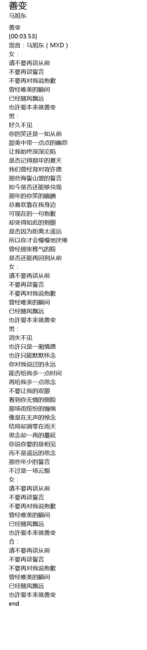 | [00:14.04] | 混音:马旭东(MXD) |