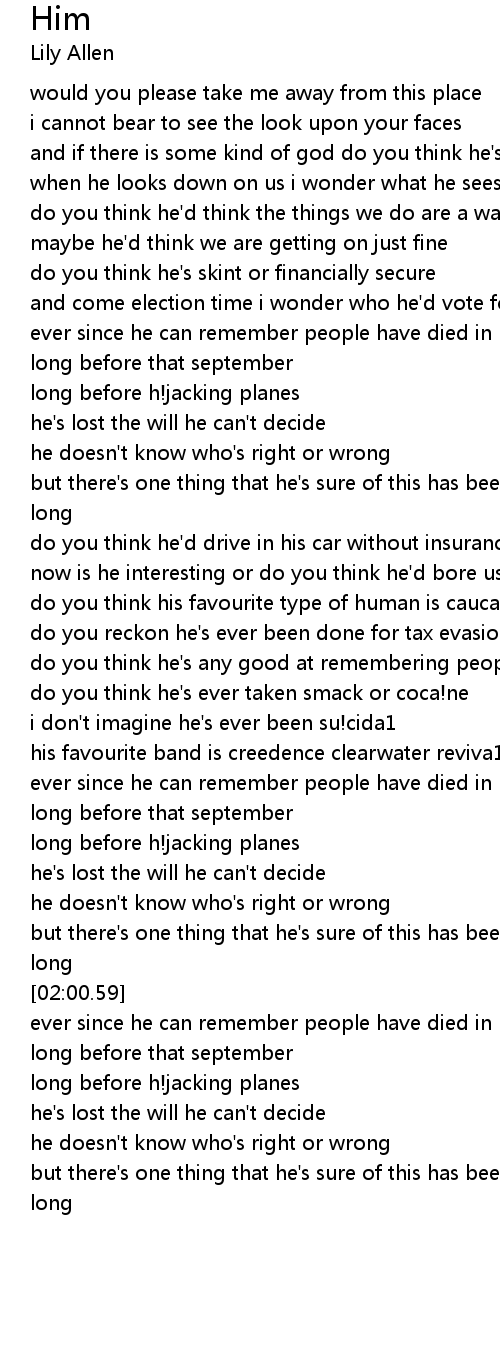 [01:25.31] do you think he's ever taken smack or coca!ne
