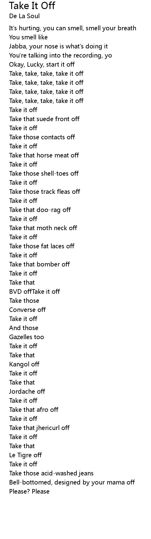 Take, take, take, take it off |