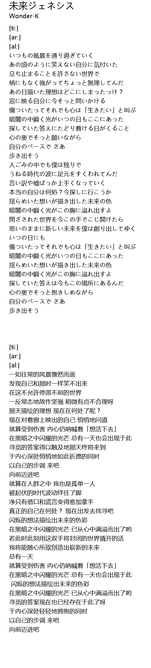 | [02:36.02] | 思いのままに新しい未来を僕は創り出してゆく |