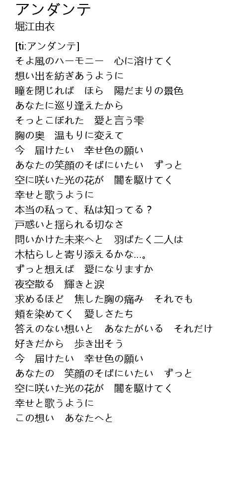 | [03:16.553] | 今 届けたい 幸せ色の願い |