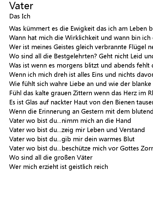 | Vater wo bist du... zeig mir Leben und Verstand | |