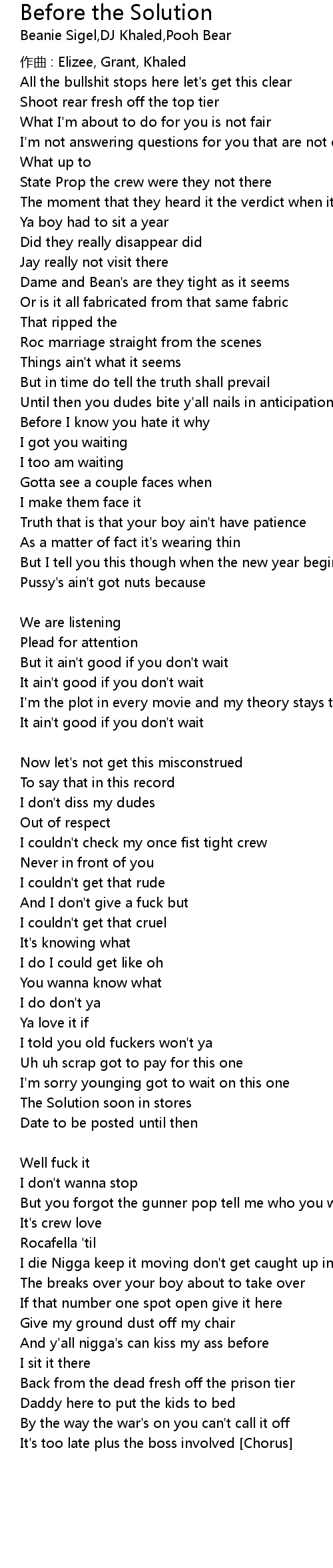 | 歌曲 | Before the Solution |