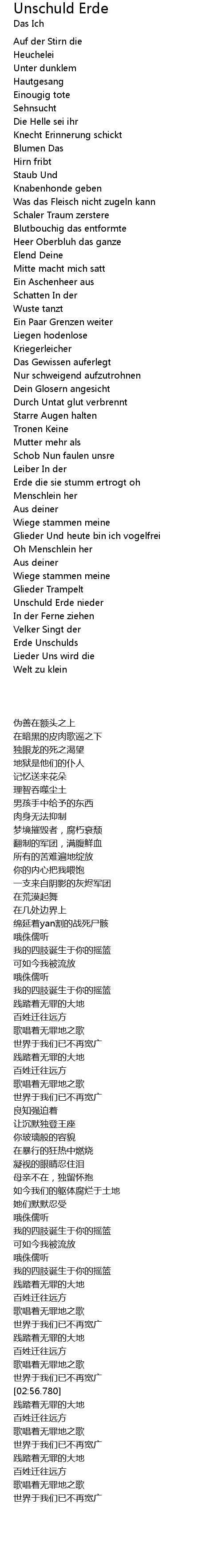 | 歌曲 | Unschuld Erde |