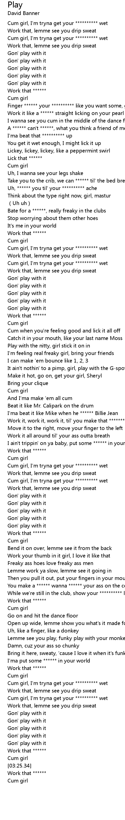 | [00:25.63] | Work it like a ****** straight licking on your pearl |