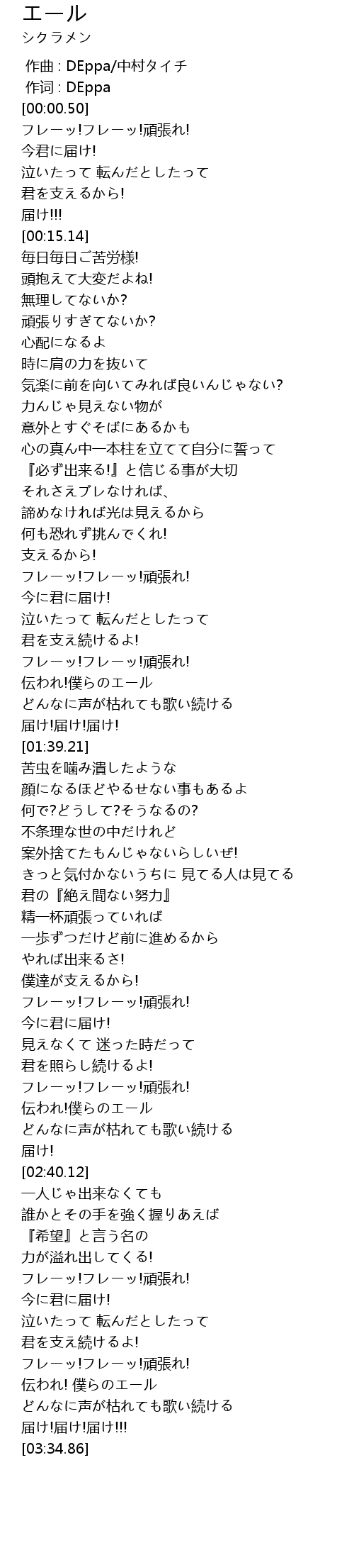 | [03:13.68] | 伝われ! 僕らのエール |