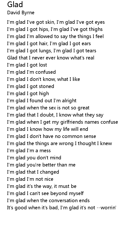 It's good when it's bad, I'm glad it's not --worrin' me |