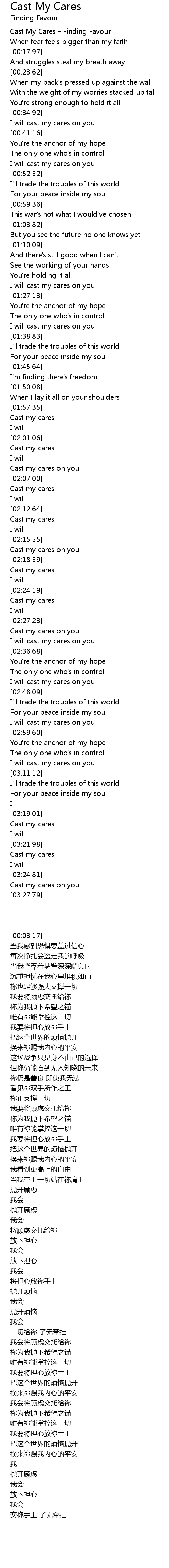 Cast My Cares - Finding Favour |