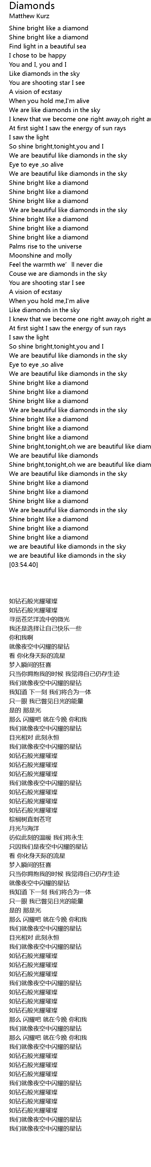 | [03:17.93] | We are beautiful like diamonds in the sky |