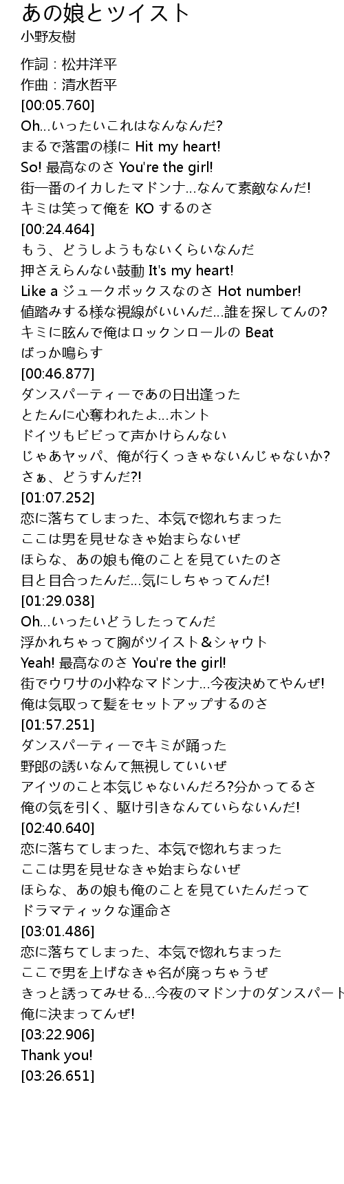 | [01:41.107] | 浮かれちゃって胸がツイスト&シャウト |