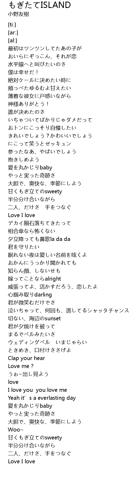 | [03:33.99] | 愛を丸かじりbaby |