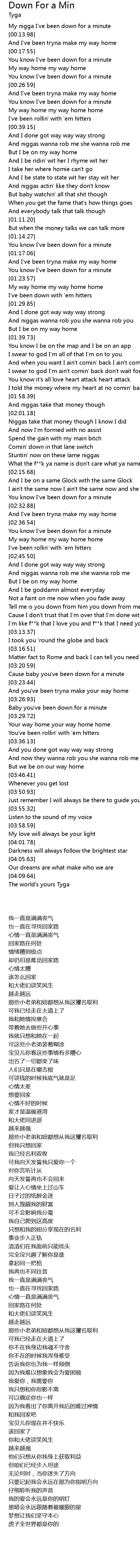 My nigga I've been down for a minute |