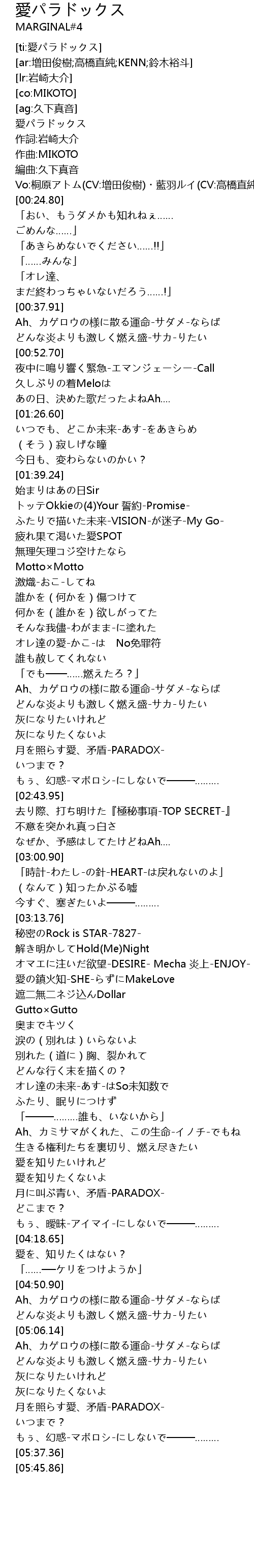| [02:32.46] | 月を照らす愛、矛盾-PARADOX- |