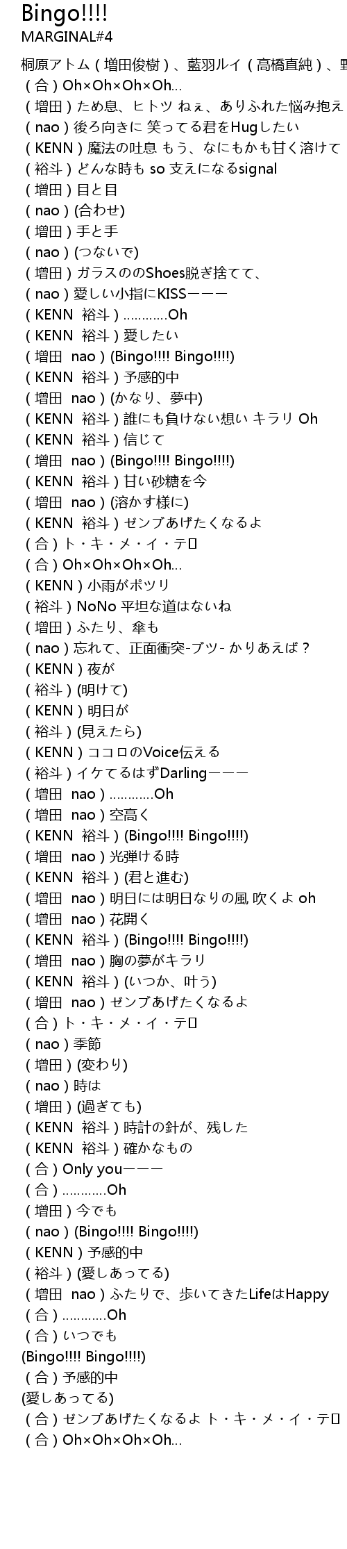 | [01:19.76] | (增田 nao)(Bingo!!!! Bingo!!!!) |
