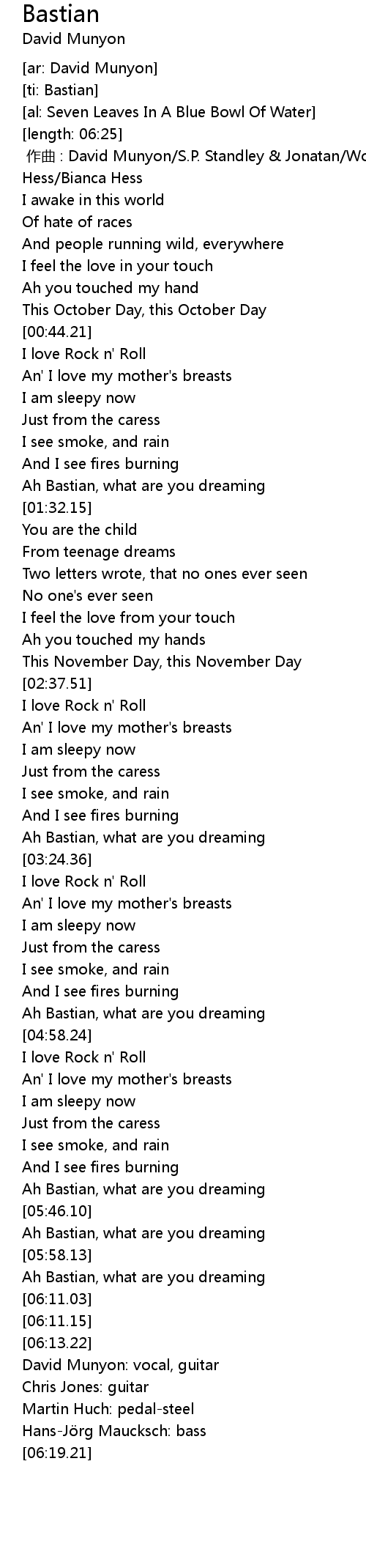 | [06:14.41] | David Munyon: vocal, guitar |
