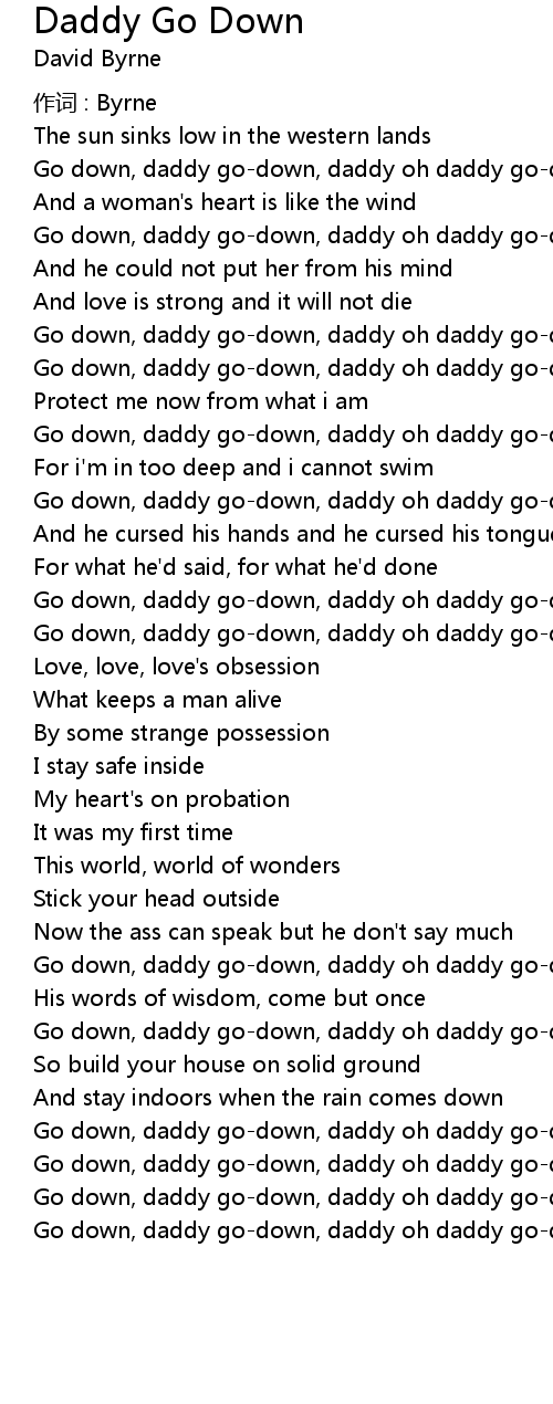 | Go down, daddy go-down, daddy oh daddy go-down | |