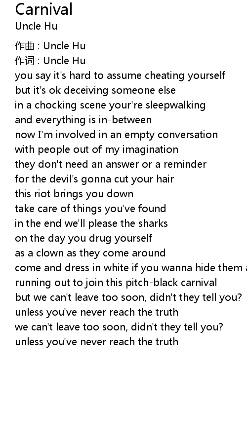 | 作词 : Uncle Hu | |