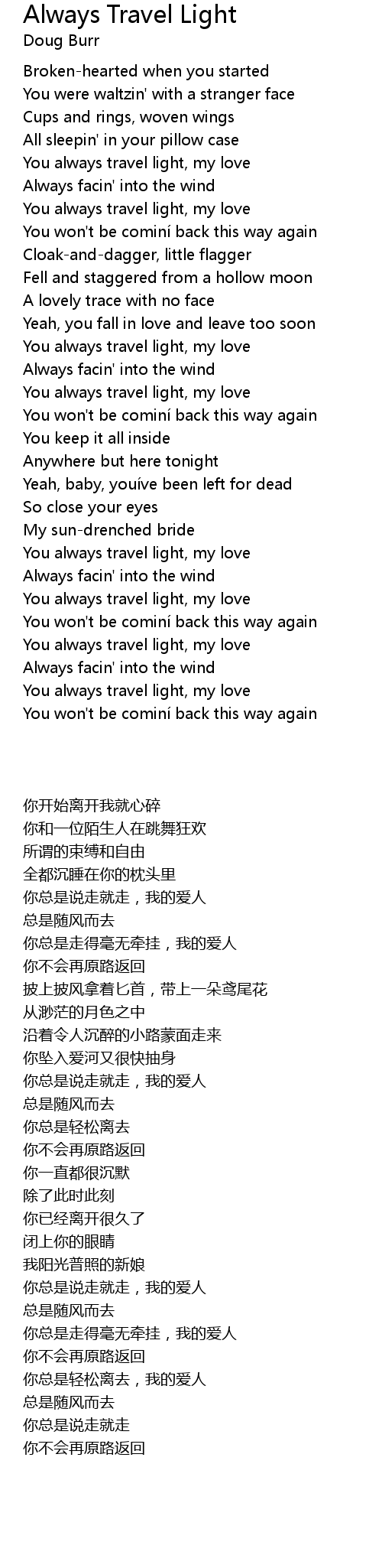 | [00:43.09] | You always travel light, my love |
