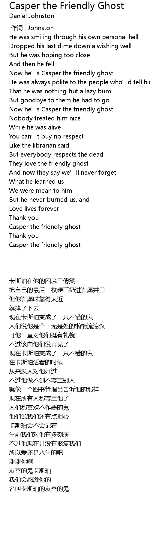 | [00:34.38] | Now he’s Casper the friendly ghost |