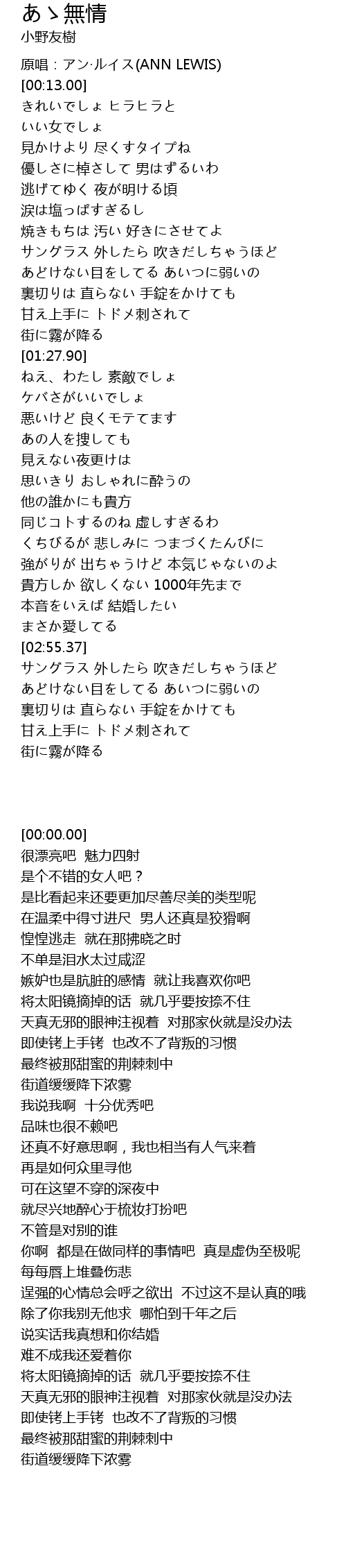 | [00:00.00] | 原唱:アン·ルイス(ANN LEWIS) |