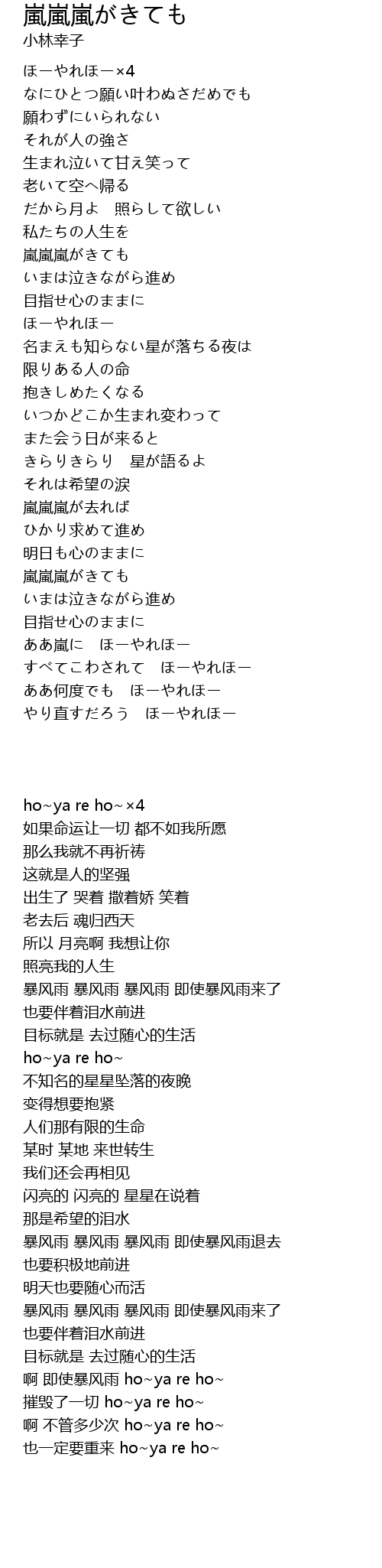 啊 即使暴风雨 ho~ya re ho~ |