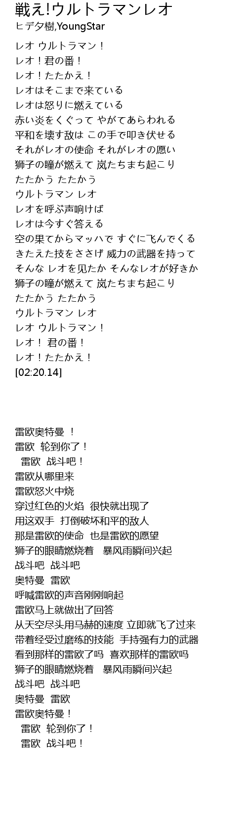 | [00:37.00] | それがレオの使命 それがレオの愿い |