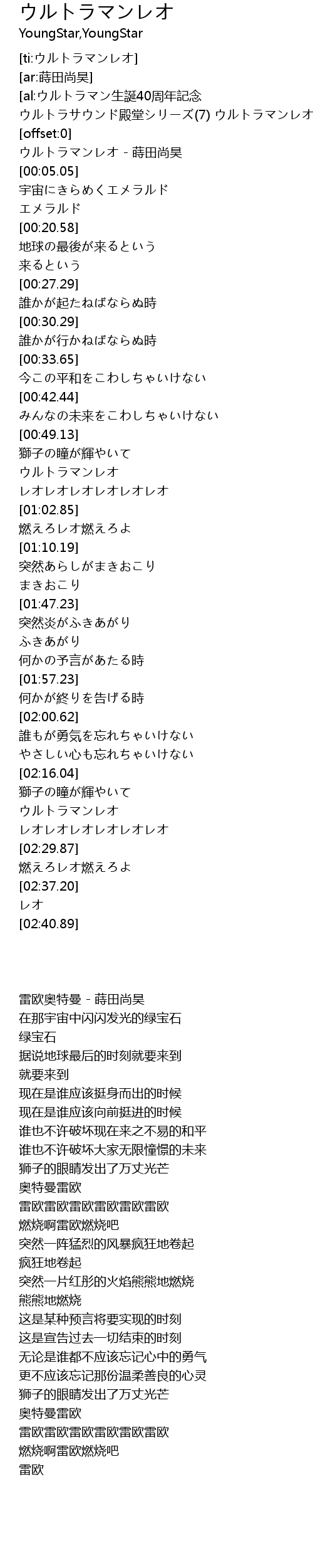 | [00:00.60] | ウルトラマンレオ - 蒔田尚昊 |