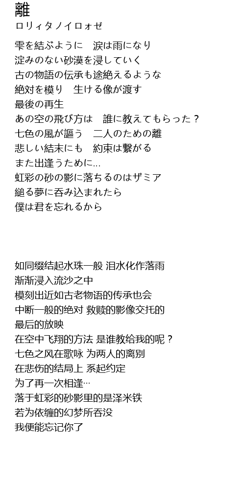 | [01:18.52] | 七色の風が謳う 二人のための離 |
