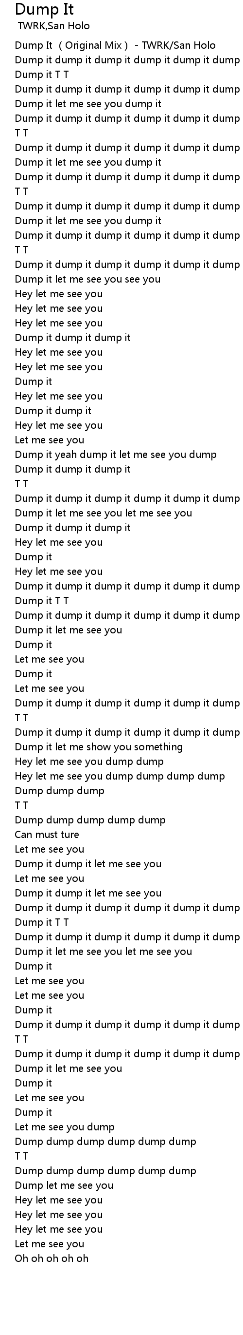 | [00:05.16] | Dump it dump it dump it dump it dump it dump it |