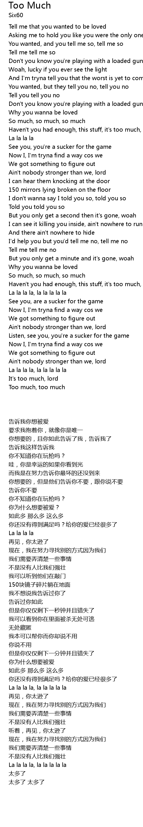 Haven't you had enough, this stuff, it's too much, too much |