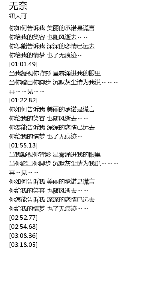 | [01:20.41] | 再~~见~~ |