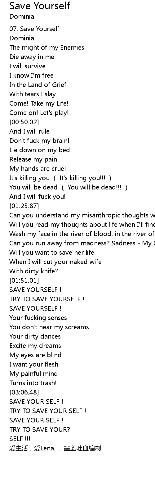 | [03:35.68] | SAVE YOUR SELF ! |