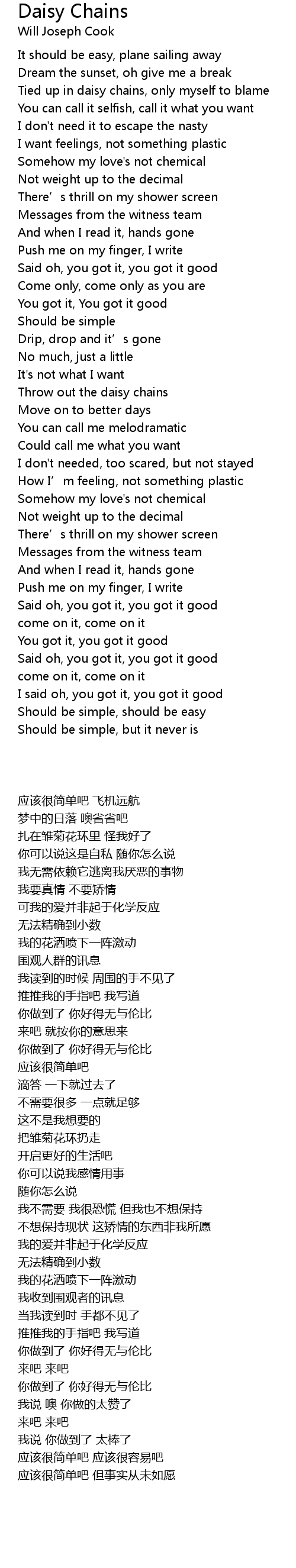 | 歌曲 | Daisy Chains |