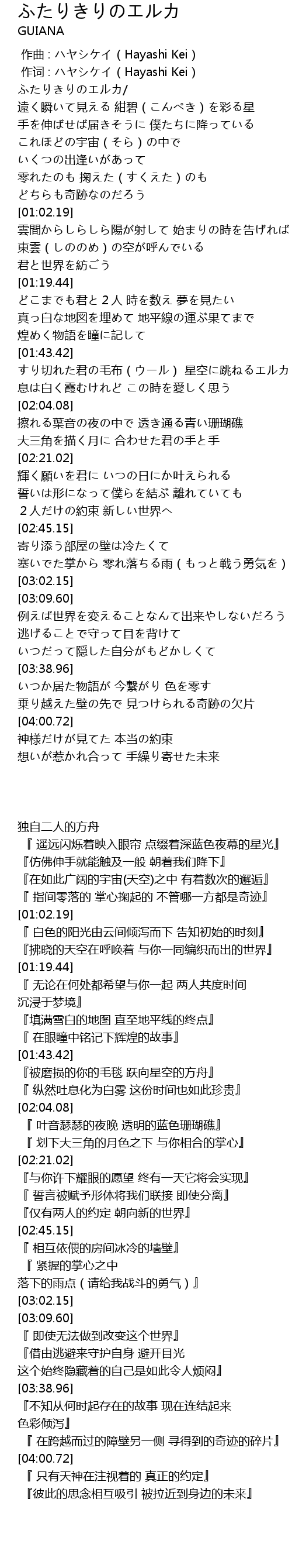 | [02:37.51] | 2人だけの約束 新しい世界へ |