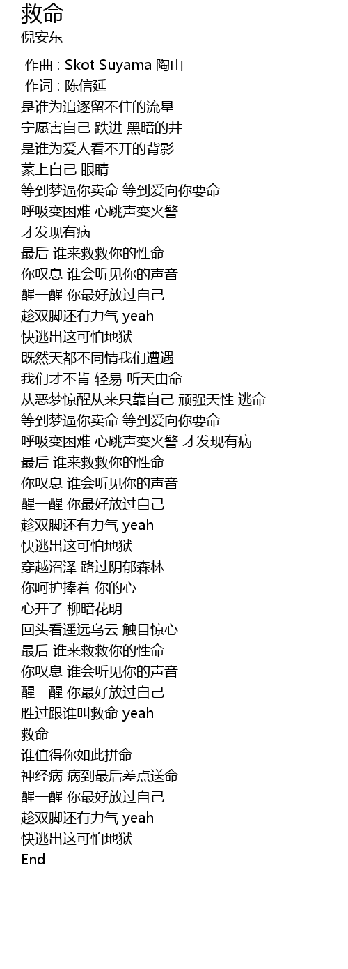 | [00:41.06] | 最后 谁来救救你的性命 |