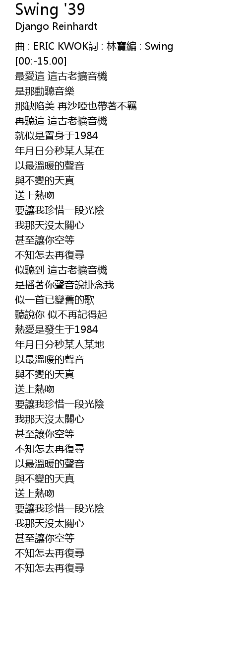| [00:-17.00] | qu : ERIC KWOK ci : lin bao bian : Swing |