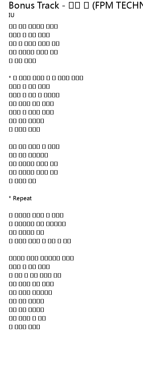 | 歌曲 | Bonus Track - 너랑 나 (FPM TECHNORCHESTRA MIX) |