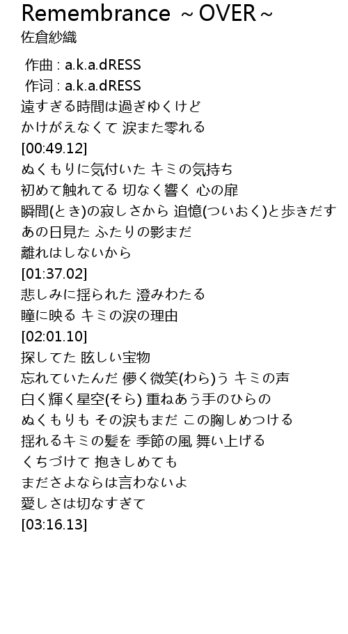 | [00:37.47] | かけがえなくて 涙また零れる |