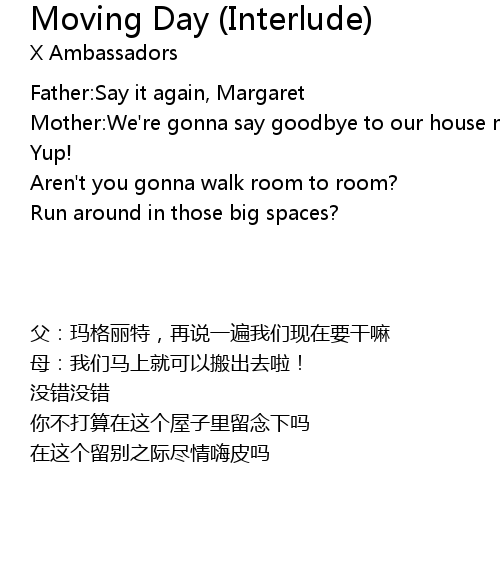 | 歌曲 | Moving Day (Interlude) |