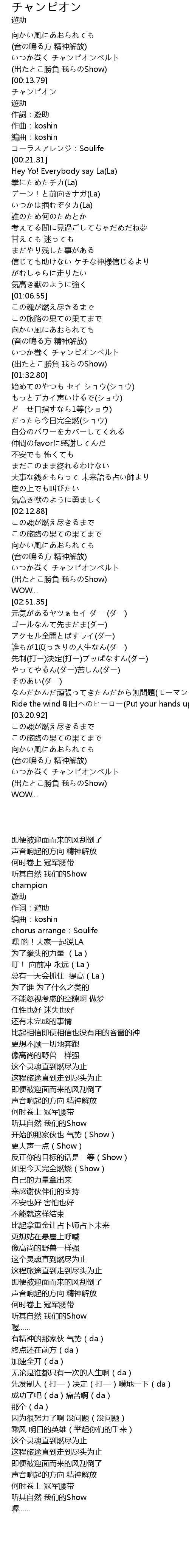 | [00:07.43] | いつか巻く チャンピオンベルト |