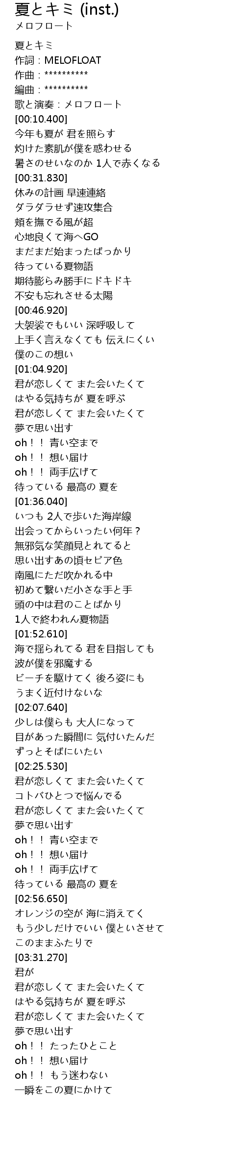 | [00:00.000] | 夏とキミ |