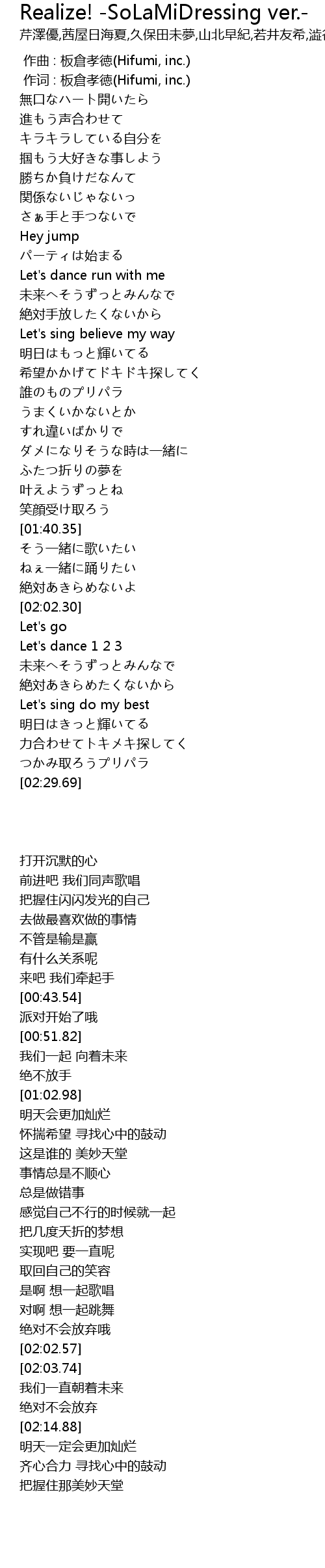 | [02:05.55] | 未来へそうずっとみんなで |