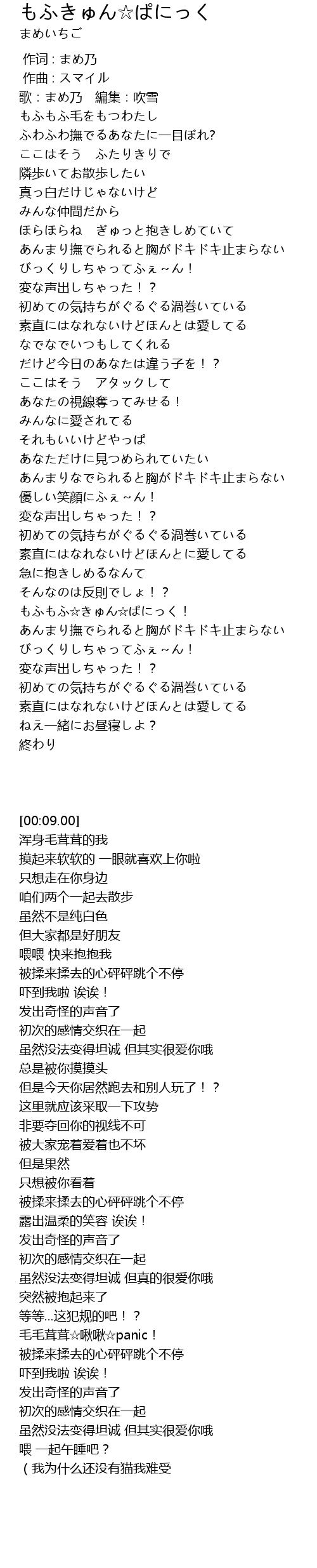 | [00:09.00] | 歌:まめ乃 編集:吹雪 |