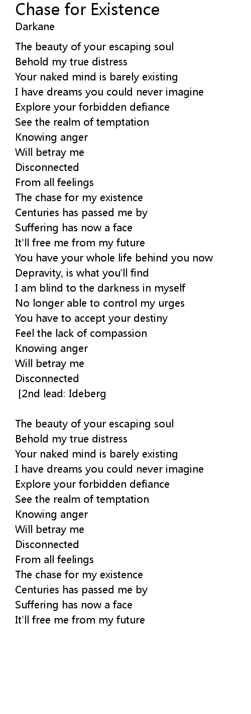 The chase for my existence |