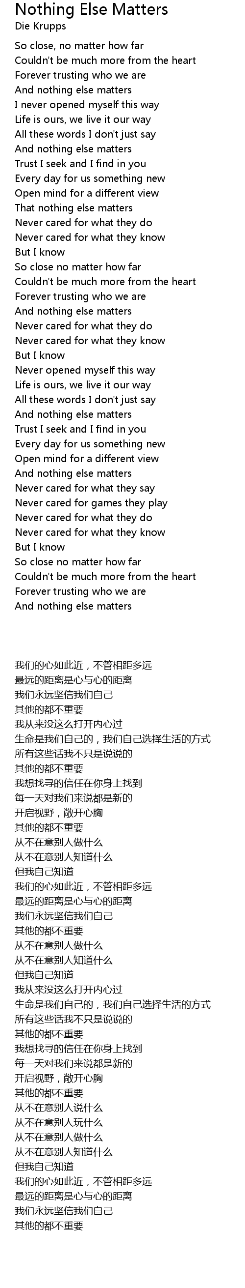 That nothing else matters |