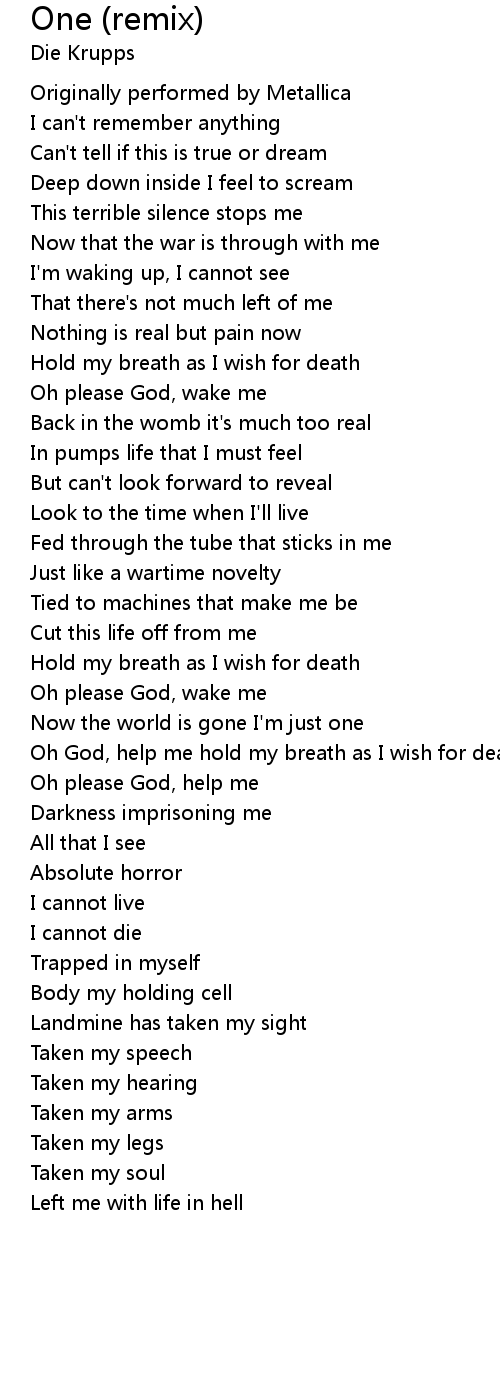 Now the world is gone I'm just one |