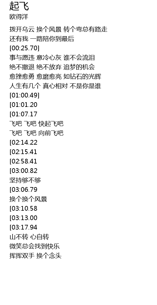 | [01:10.82] | fēi ba fēi ba kuài qǐ fēi ba |
