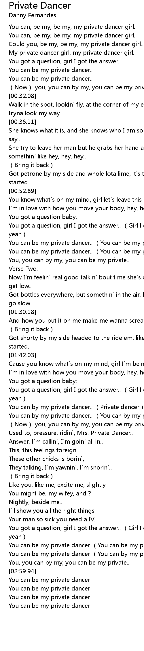 | [02:52.99] | You can be my private dancer (You can by my private dancer) |
