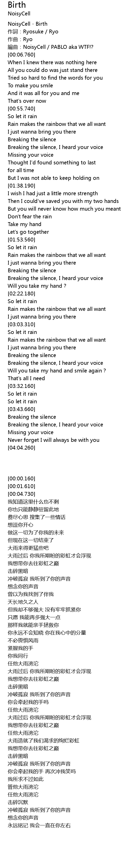| [00:04.730] | 編曲:NoisyCell / PABLO aka WTF!? |
