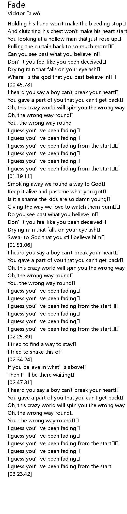 | [02:02.50] | Oh, this crazy world will spin you the wrong way round |